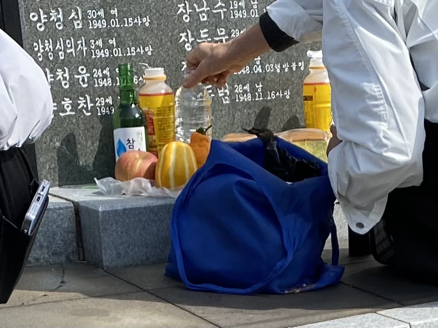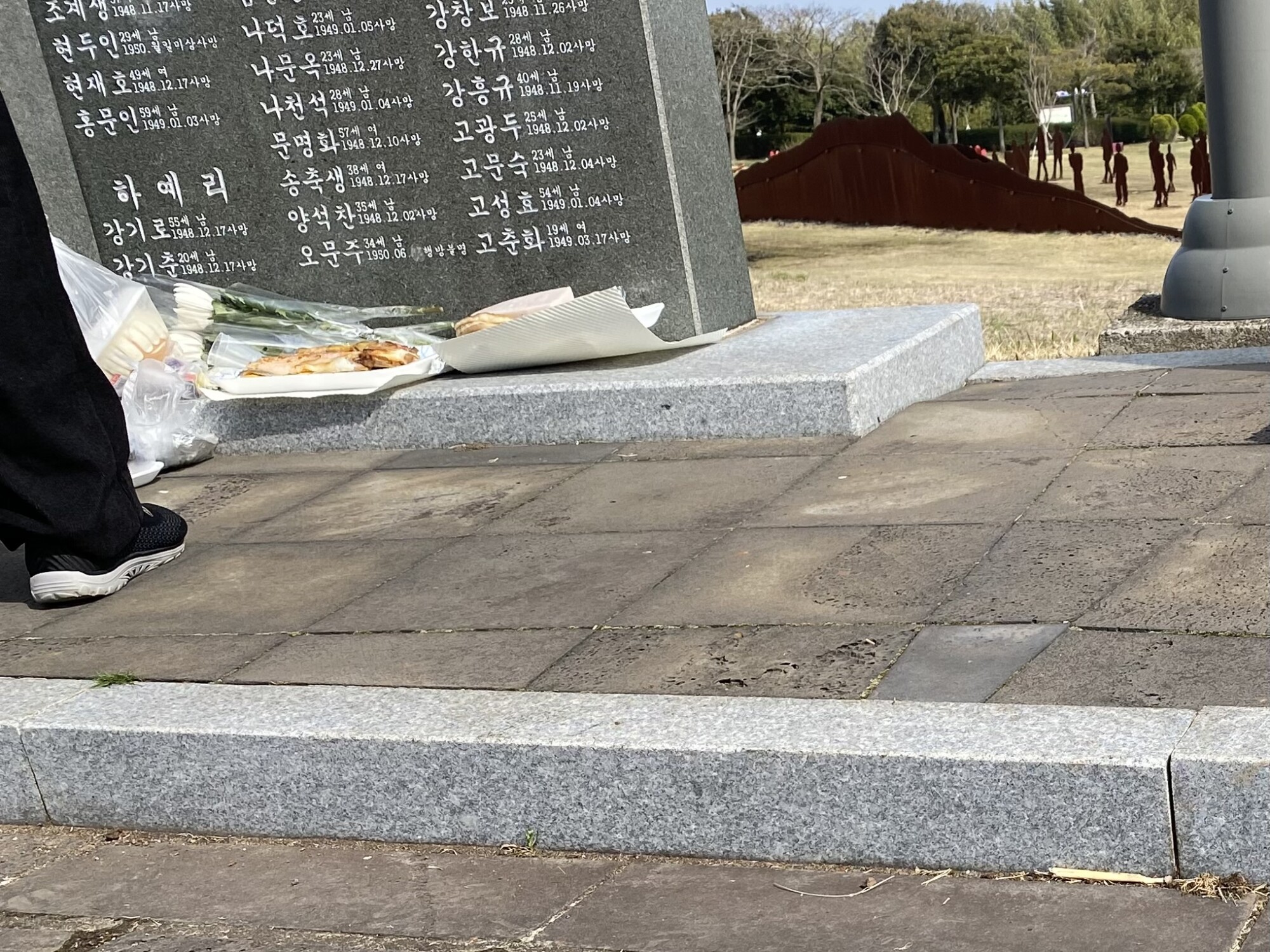 제주와 함께 호흡하며 4·3을 둘러싼 정말 역동적인 정치를 느꼈습니다. 민주화 운동이 국가의 책임으로서 국가폭력을 규정하고 특별법과 기념공간을 비롯한 제도화의 성과를 거두었다면, 추념식 한켠 부스에서 여전히 진행중인 채혈 DNA 대조를 통한 시신 찾기의 장면은 이제 시작이라는 느낌이었어요. 희생자의 권리를 둘러싼 경합에서 무장봉기의 책임자는 제외되었지만 군경은 포함되었지요. 4·3을 비롯한 5.18, 위안부 등 역사 왜곡과 혐오 발언은 아직 명확한 규제나 처벌법이 없습니다. 가장 강력한 정동적 감응을 느낀 장면은 평화 공간의 빈 공간에 나열된 비석 앞에 유족들의 아주 일상적인 물품들이 놓였을 때였어요. 소주, 카스테라, 어린이용 음료와 같은.. 생존자와 유족들의 몸 증언을 역사화하고 정치화하며 사회적 기억으로 포함시키고, 그에 기반한 지역과 공동체의 정치를 모색하는 것은 정말 이제 시작이라고 생각했습니다. 내년 추념식에는 접주분들과 함께 오고 싶어요.