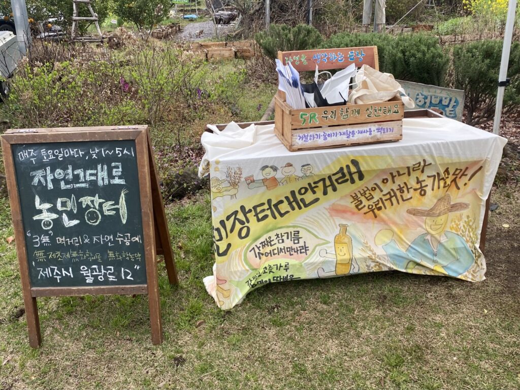 제가 거점이라는 말을 드리지 않았는데, 나루 접주님께서 먼저 “장터를 제주 접주 거점으로 하자!” 라는 말씀을 하시더라고요! 남아동에서 연대하는 자체가 장터가 지향하는 대안적인 방식을 실천하는데 힘이 된다고 하셨어요. 장터에 연대하며, 제주생태텃밭학교에서 진행하는 생태농장 방문과 농사일 경험을 남아동이 함께하면 좋겠다고 하셨습니다.