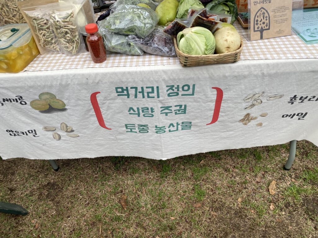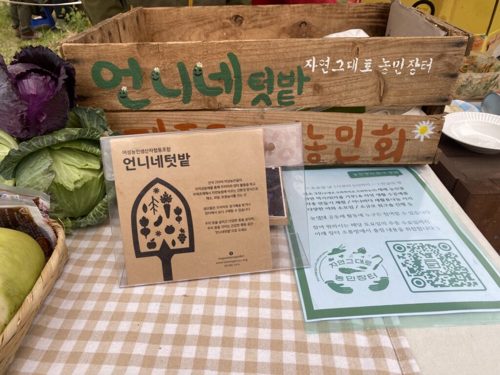 전국여성농민회총연합 청년특별위원회 강나루 접주님과 김지영 위원장님이 운영위원으로 꾸려오신 곳이어요. 제주 여농 언니네텃밭 선생님들께서도 부스를 운영하고 계셨고요. 덥썩 찾아갔는데 단단히 맞이해주셨어요.