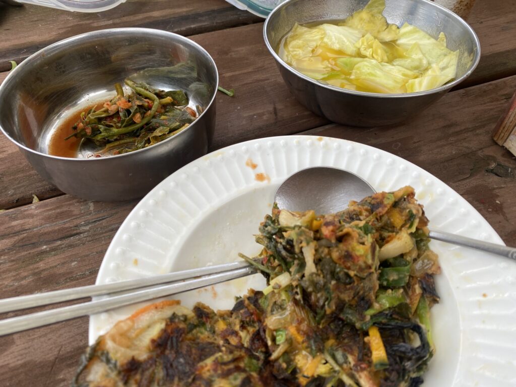 너무너무 맛있었던 쑥이 들어간 김치전과 배춧대로 만든 동지김치(!), 단호박이 들어간 물김치와 봄동김치.